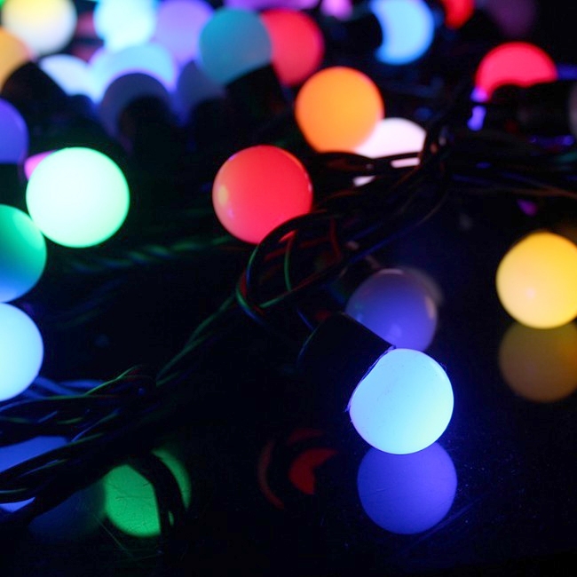 Гирлянда «Шарики» — представляет собой кабель, вдоль которого которого расположены светодиодные шарики. Светодиодная гирлянда из шариков с RGB-светодиодами имеет во всех шариках по малюсенькому контроллеру, изменяющему цвета в согласно введенной программе. Так как контроллеры в любом шарике функционируют независимо друг от друга, возникает превосходный эффект, когда гирлянда переливается всеми цветами радуги. Светодиодная гирлянда «Шарики» используется не только лишь для декорации новогодних елей, но и с целью дизайна всевозможных торжеств, различных событий. Также смотрите другие виды гирлянд.